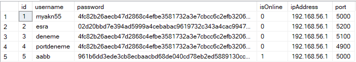 Kullanıcı çevrimiçi olduktan sonra Database’de online kısmı güncellenir ve 1 değerini alır.
